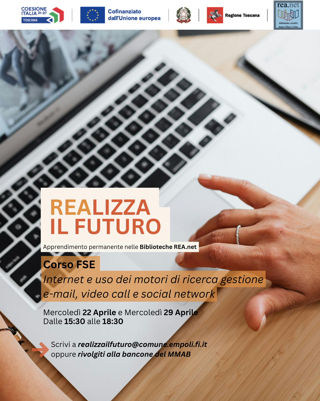 Scarica il modulo di iscrizione al link https://reanet.empolese-valdelsa.it/index.php/articoli-news, poi invia il modulo compilato per mail a realizzailfuturo@comune.empoli.fi.it